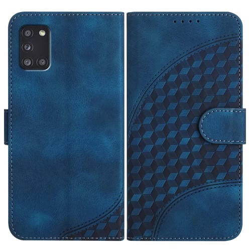 Funda de Cuero Samsung Galaxy A31 Yx0060 con Relieve y Cabeza de Elefante con Cordón (Azul Real)