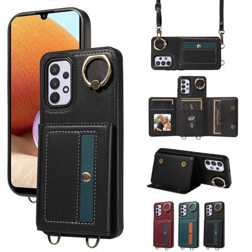 Funda de Cuero Crossbody Wallet Bag con Ring Holder para Samsung Galaxy A32 4G (Negro)