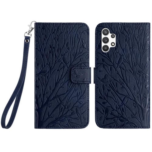 Funda para Teléfono Samsung Galaxy A32 4G Cuero Patrón En Relieve Tree Birds (Azul)