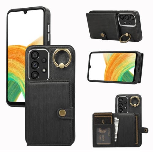 Funda para Teléfono Samsung Galaxy A33 5G con Soporte para Anillo y Billetera con Textura Cepillada (Negro)