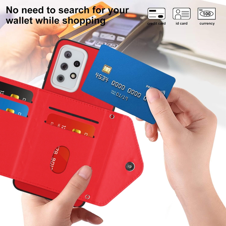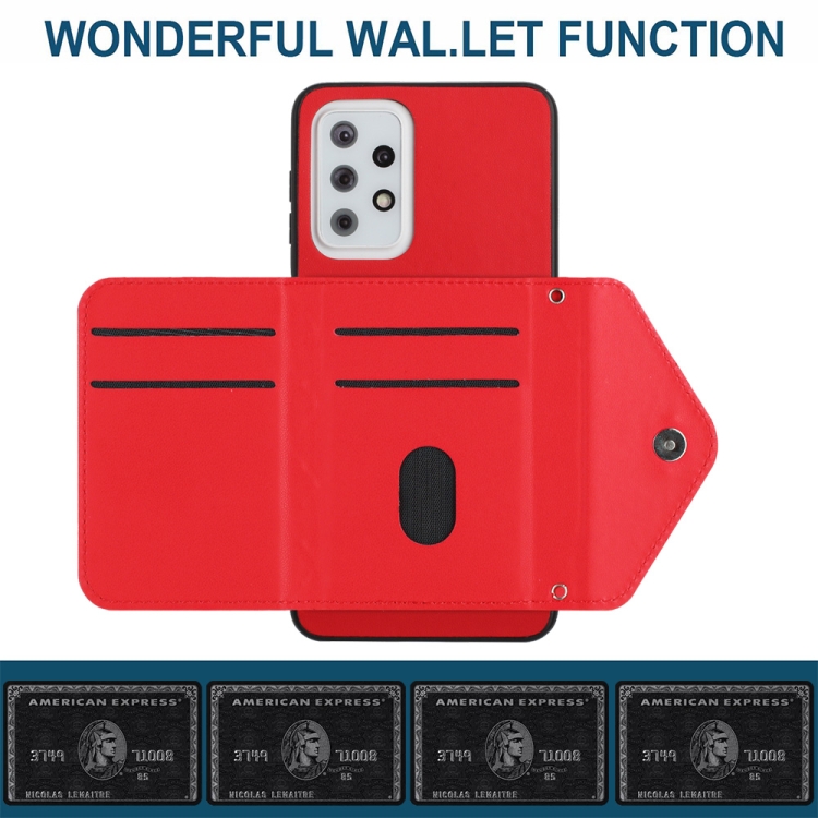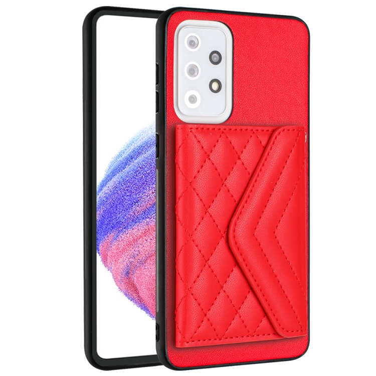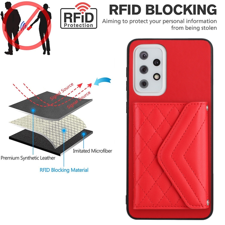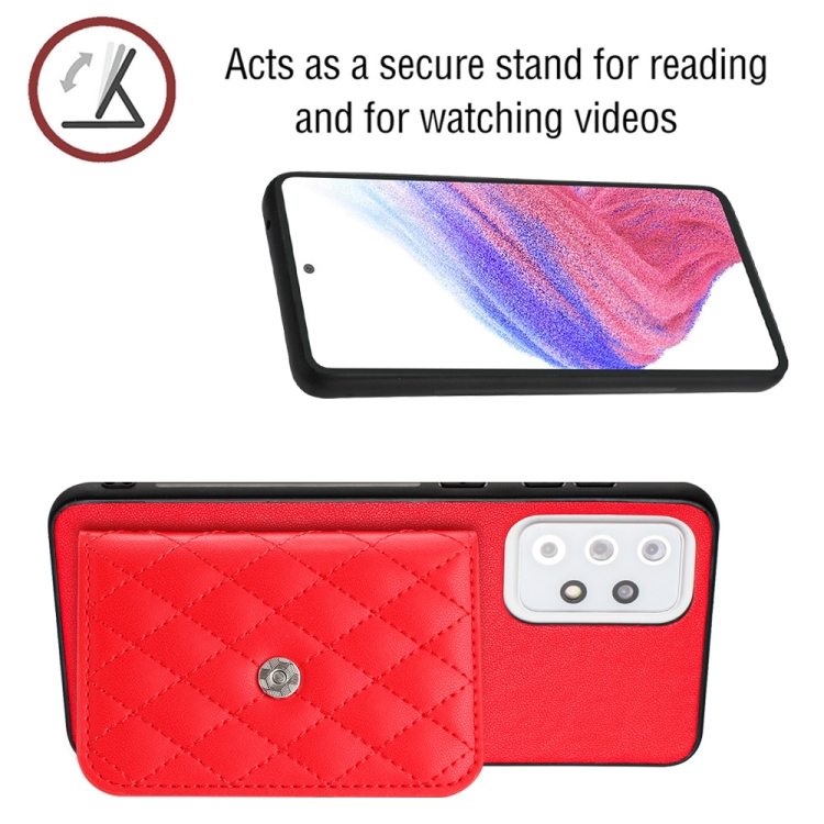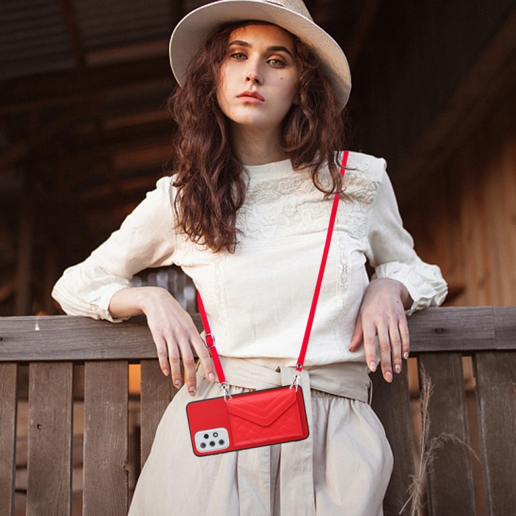 Funda para Teléfono Samsung Galaxy A33 5G con Bolsa para Tarjetas Rfid Textura Rómbica y Cordón Largo (Rojo)
