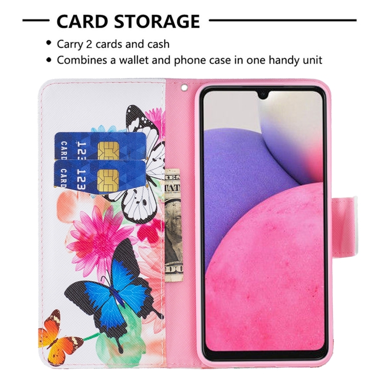 Estuche de Cuero Samsung Galaxy A33 5G Patrón de Dibujo Mariposa