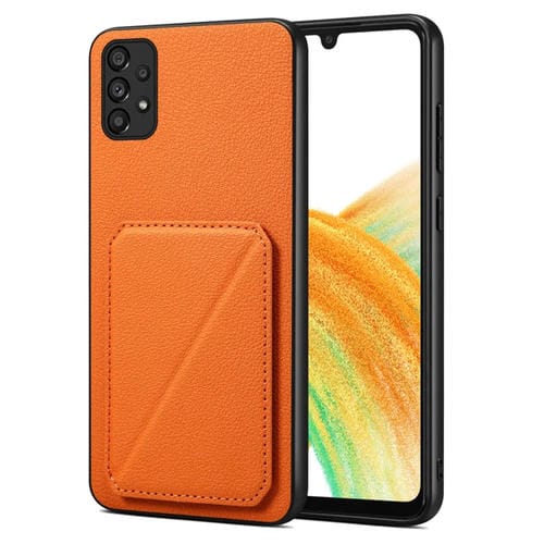 Funda para Teléfono Samsung Galaxy A33 Denior con Parte Trasera de Piel de Becerro de Imitación y Soporte (Naranja)