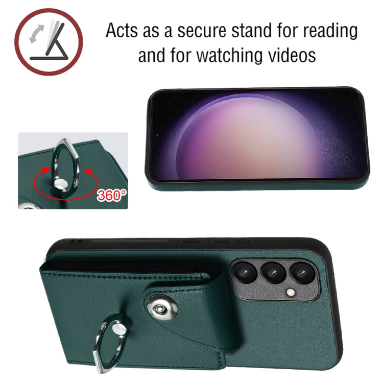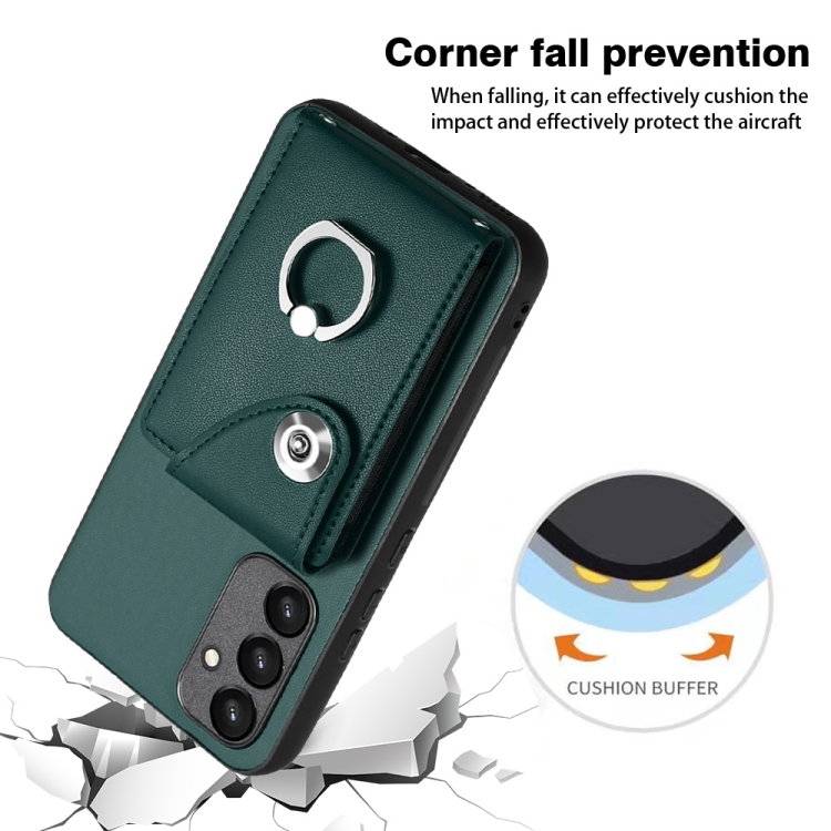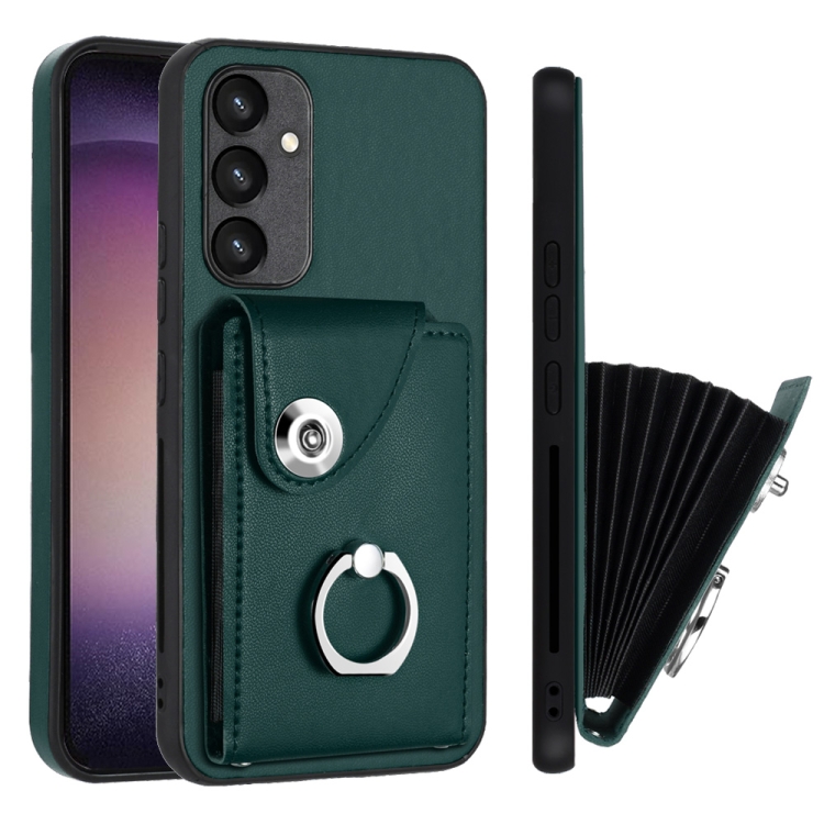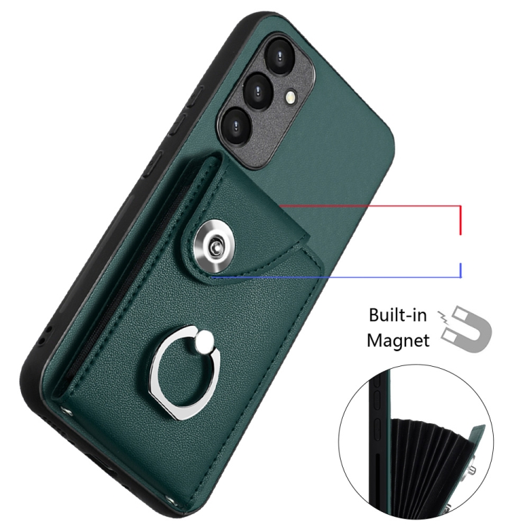 Funda para Teléfono Samsung Galaxy A34 5G de PU con Soporte para Anillo y Bolsa para Tarjeta de Órgano (Verde)