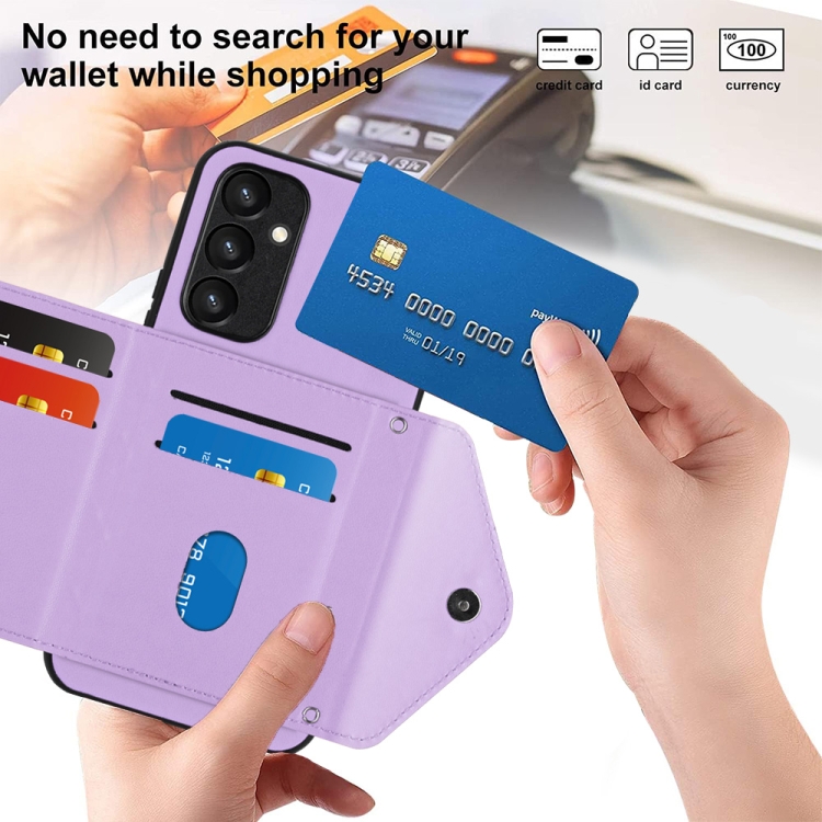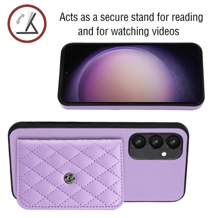 Funda para Teléfono Samsung Galaxy A34 5G con RFID Bolsa para Tarjetas Textura Rómbica Cordón Largo (Púrpura Claro)