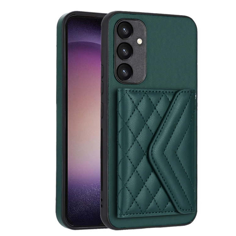 Funda para teléfono Samsung Galaxy A34 5G con RFID, bolsa para tarjetas, textura rómbica y cordón largo (Verde)