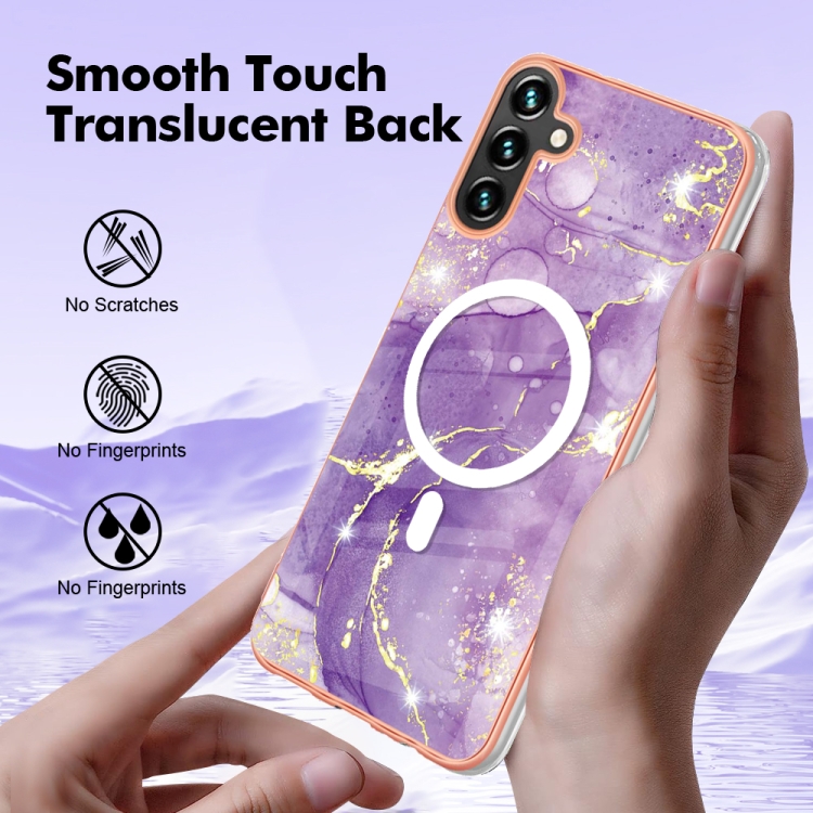 Funda para Samsung Galaxy A34 5G Patrón de Mármol Caja del Teléfono Imd Magsafe TPU de Doble Cara (Púrpura)