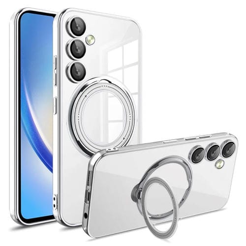 Estuche para Teléfono Samsung Galaxy A34 Galvanoplastia Magsafe Soporte Rotación 360 Grados a Prueba de Golpes (Plata)