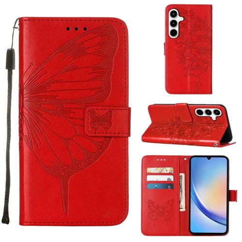 Funda para Samsung Galaxy A35 5G Cuero con Mariposa en Relieve (Rojo)
