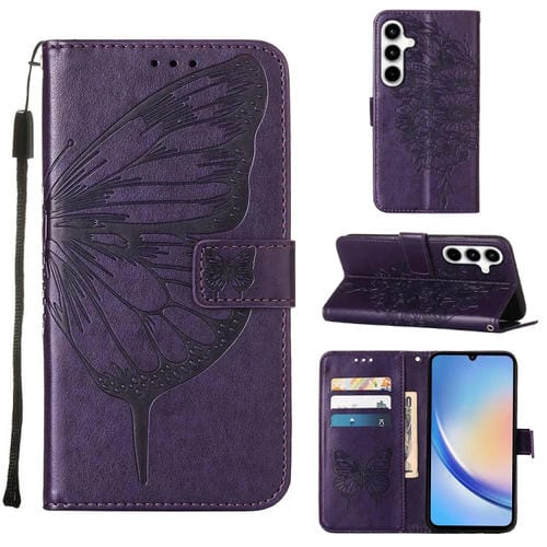 Funda para Teléfono Samsung Galaxy A35 5G Cuero Mariposa En Relieve (Púrpura Oscuro)