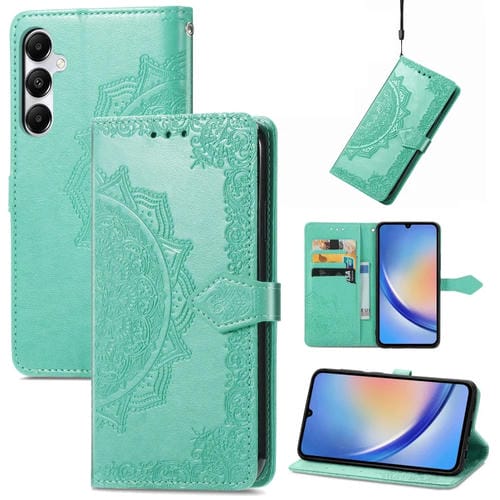 Funda para Teléfono Samsung Galaxy A35 5G Cuero Relieve Flor de Mandala (Verde)