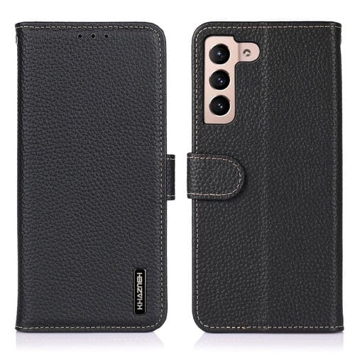 Funda para Samsung Galaxy A35 5G Khazneh Litchi Cuero Genuino (Negro)
