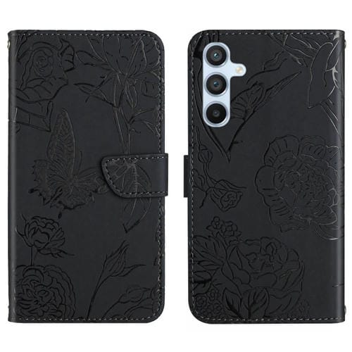 Funda de Cuero Samsung Galaxy A35 5G Skin Feel Butterfly con Tapa en Relieve (Negro)