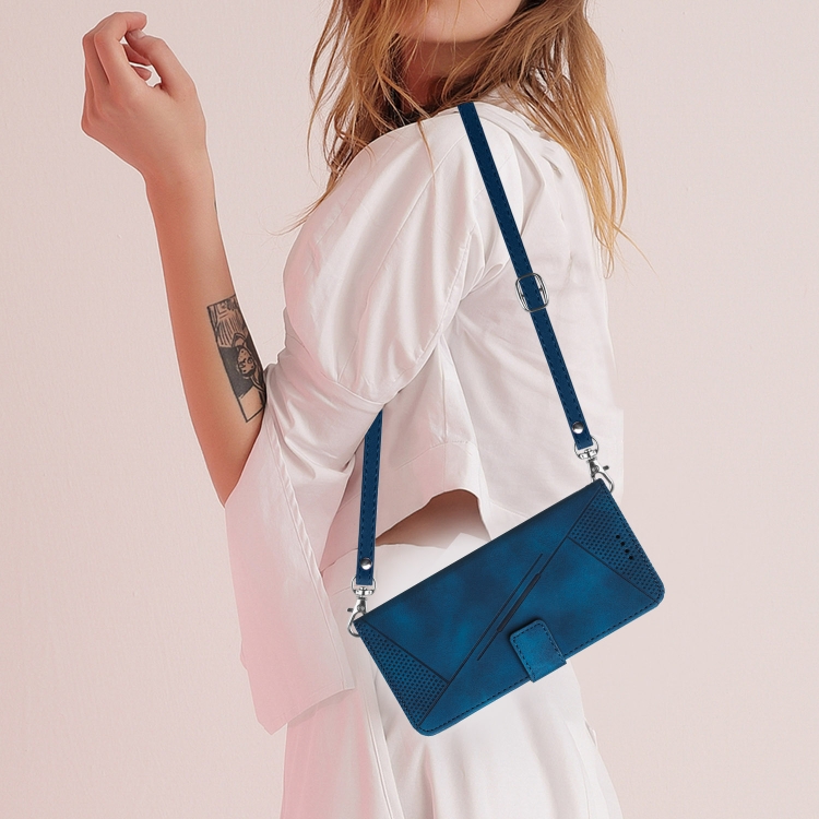 Funda de Cuero para Samsung Galaxy A35 Dream Triangle con Cordón Largo (Azul)