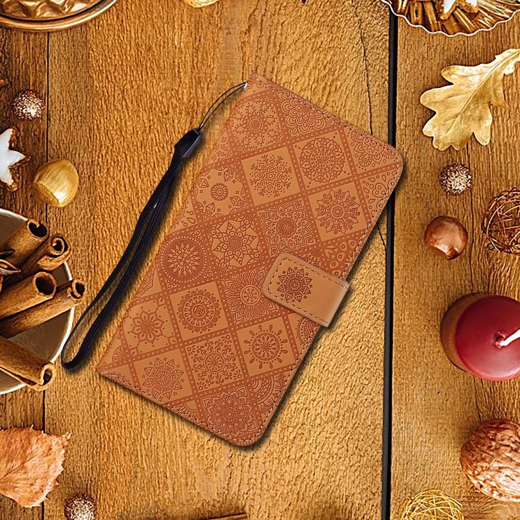 Funda para Teléfono Samsung Galaxy A35 Cuero Patrón En Relieve Estilo Étnico (Marrón)