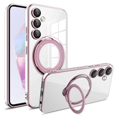 Estuche para Teléfono Samsung Galaxy A35 Galvanoplastia Magsafe Soporte Rotación 360 Grados a Prueba de Golpes (Rosa)
