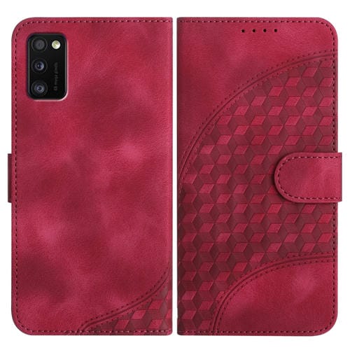 Funda para teléfono Samsung Galaxy A41 Yx0060 de cuero con relieve y cabeza de elefante con cordón (Rojo Rosa)
