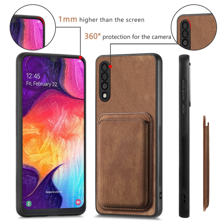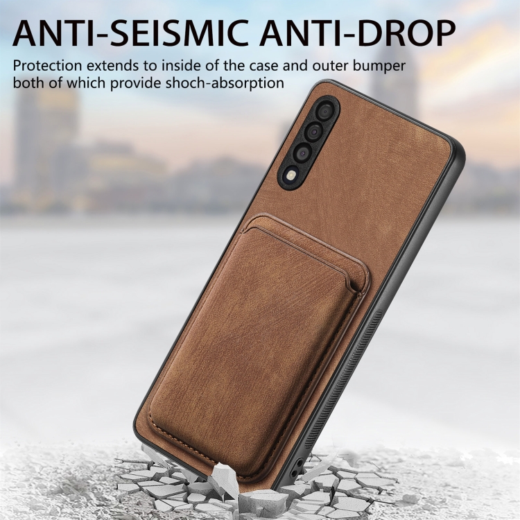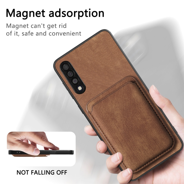 Funda de Teléfono Samsung Galaxy A50S Magnética con Bolso de Tarjeta de Cuero Retro (Marrón)