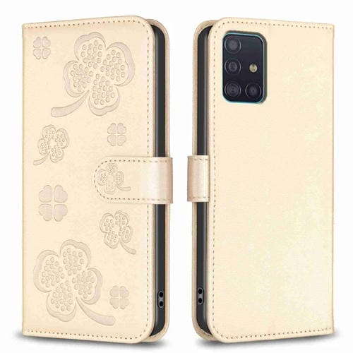 Funda para Samsung Galaxy A51 4G Cuero Relieve Cuatro Hojas (Dorado)