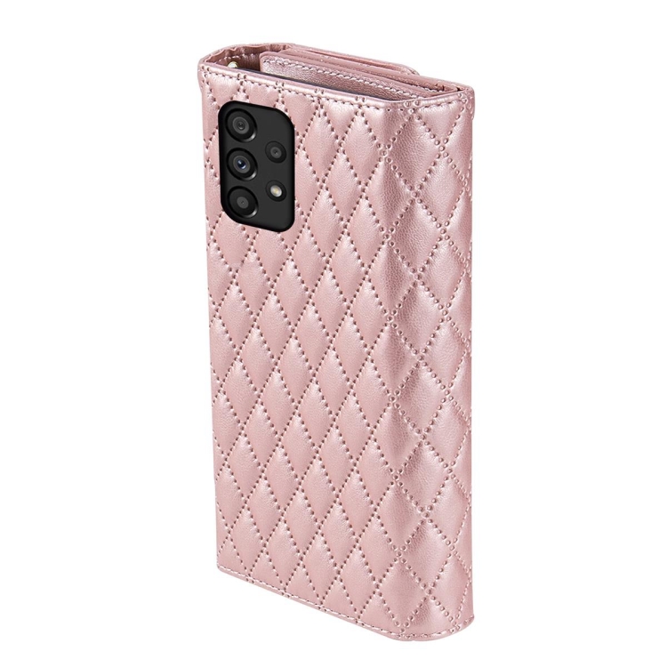 Estuche para Teléfono Samsung Galaxy A52 5G 4G Cuero Rómbico Billetera MultiTarjeta con Cremallera (Oro Rosa)