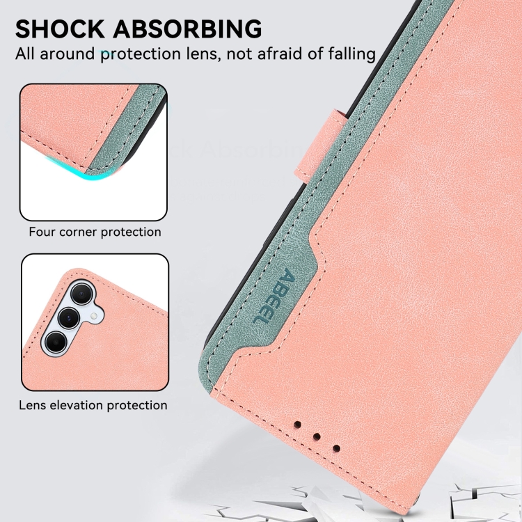 Funda de Cuero Abeel para Samsung Galaxy A53 5G Color Block Magnética Rfid (Rosa-Cian)