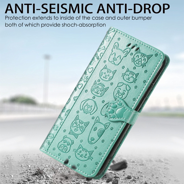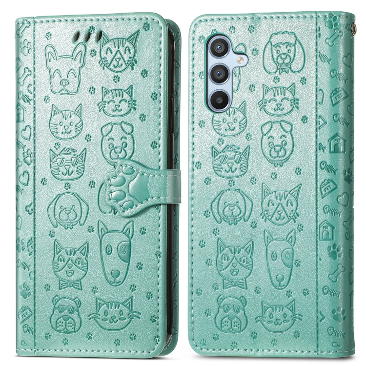 Para Samsung Galaxy A54 5G Cat and Dog Estuche de cuero en relieve para teléfono (verde)
