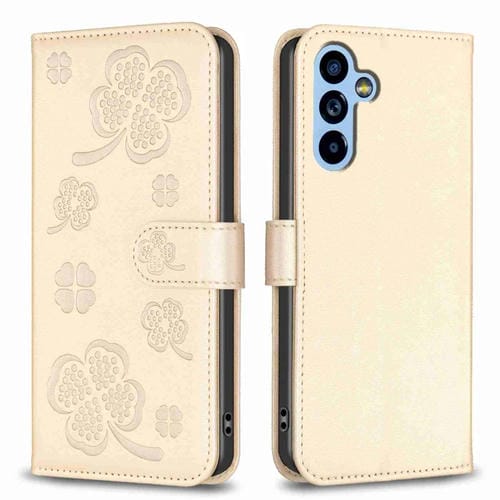 Funda para Samsung Galaxy A54 5G Cuero Relieve Cuatro Hojas (Dorado)