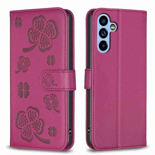 Funda para Samsung Galaxy A54 5G Cuero Relieve Cuatro Hojas (Rojo Rosa)