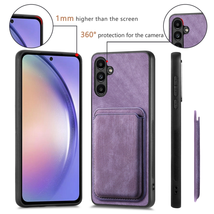Funda de Teléfono Samsung Galaxy A54 5G Magnética con Bolsa de Tarjeta Cuero Retro (Púrpura)