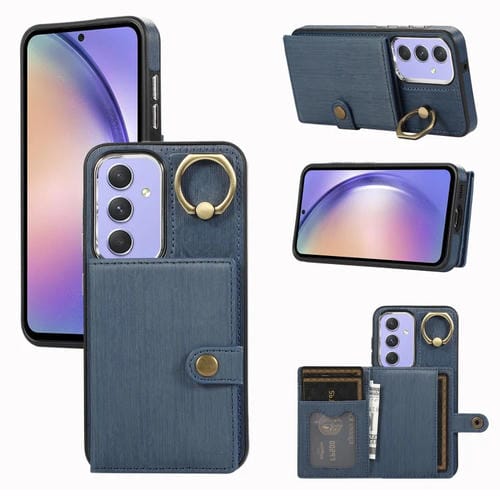Funda para Teléfono Samsung Galaxy A54 5G con Soporte para Anillo y Billetera (Azul)