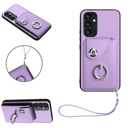 Funda para Teléfono Samsung Galaxy A54 5G de PU con Soporte para Anillo y Bolsa para Tarjeta con Cordón (Púrpura)