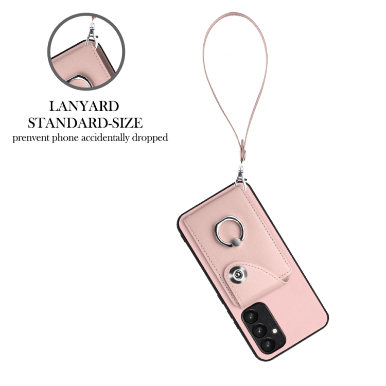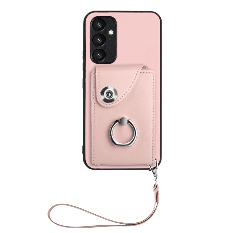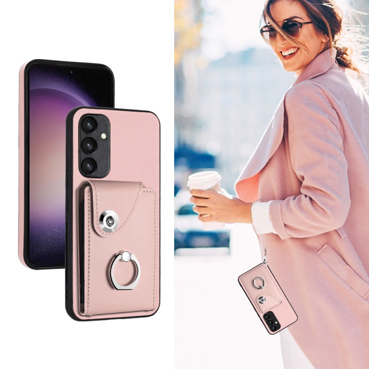 Funda para Teléfono Samsung Galaxy A54 5G Pu con Soporte para Anillo y Bolsa para Tarjeta con Cordón (Rosa)