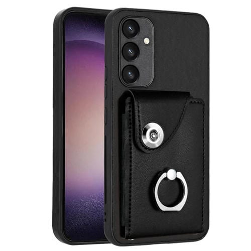 Funda para Teléfono Samsung Galaxy A54 5G de PU con Soporte para Anillo y Bolsa para Tarjeta (Negro)