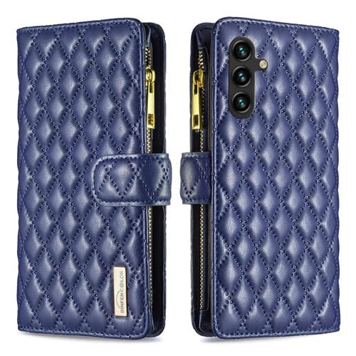 Funda para Teléfono Samsung Galaxy A55 Diamond Lattice Zipper Wallet de Cuero con Tapa (Azul)