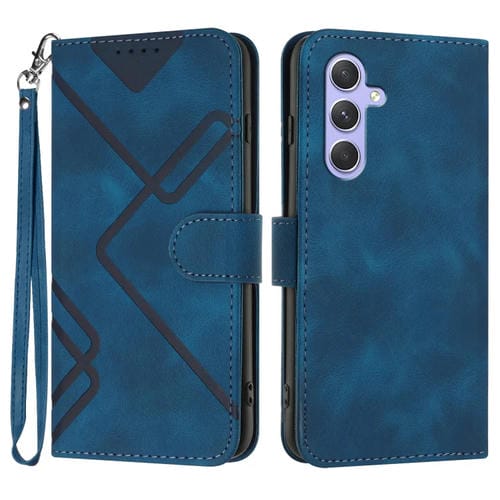 Funda para Samsung Galaxy A55 Cuero Sensación de Piel Patrón de Líneas (Azul Real)