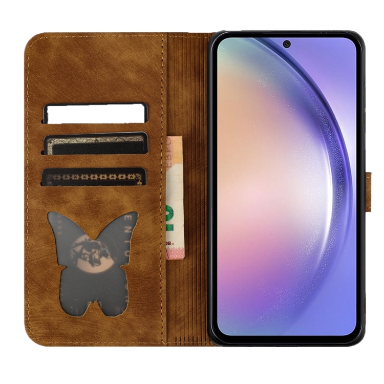 Funda para Teléfono Samsung Galaxy A55 Cuero con Tapa En Relieve Butterfly Cat (Marrón)