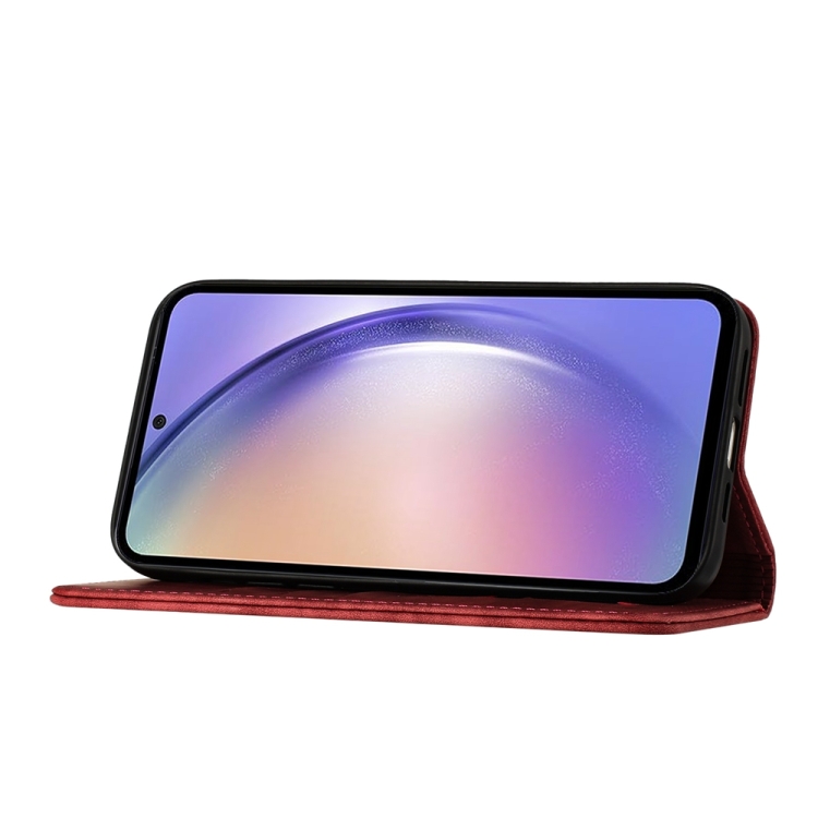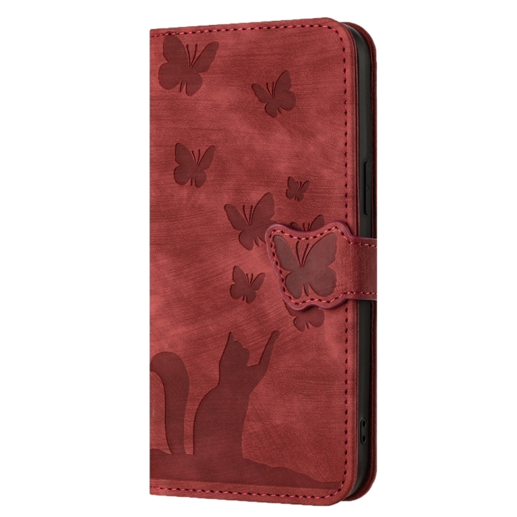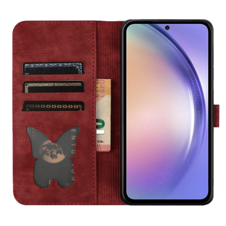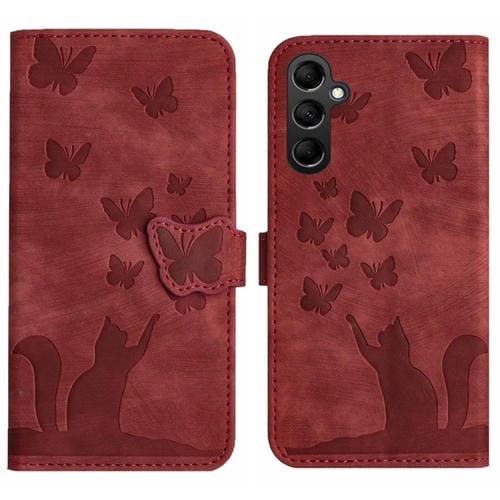 Funda para Teléfono Samsung Galaxy A55 Cuero con Tapa Relieve Butterfly Cat (Rojo)