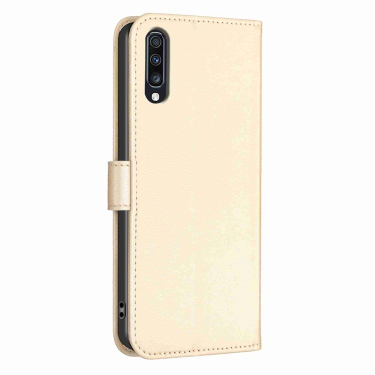 Funda para Samsung Galaxy A70 Cuero Relieve Cuatro Hojas (Dorado)