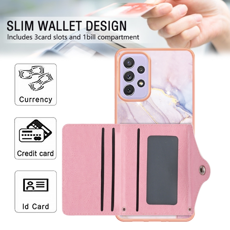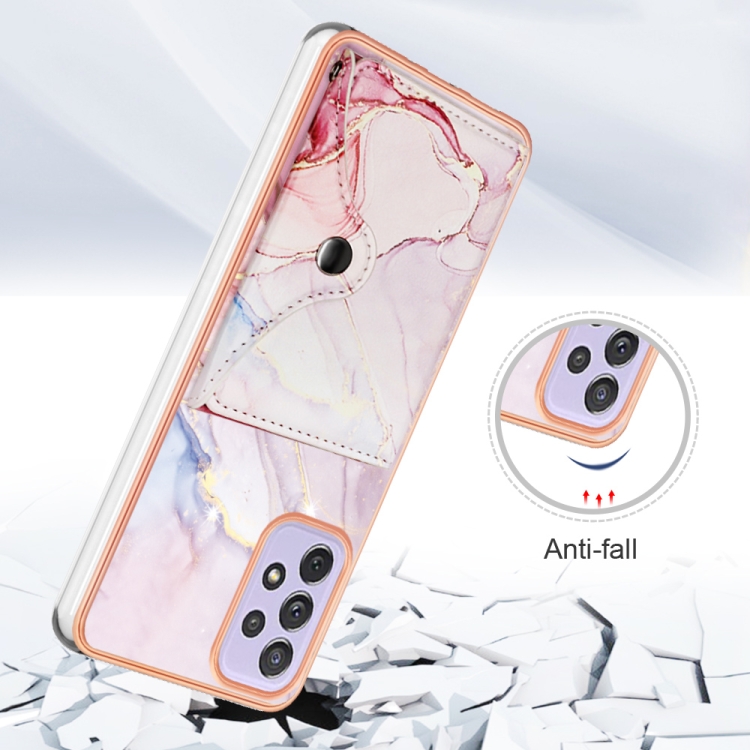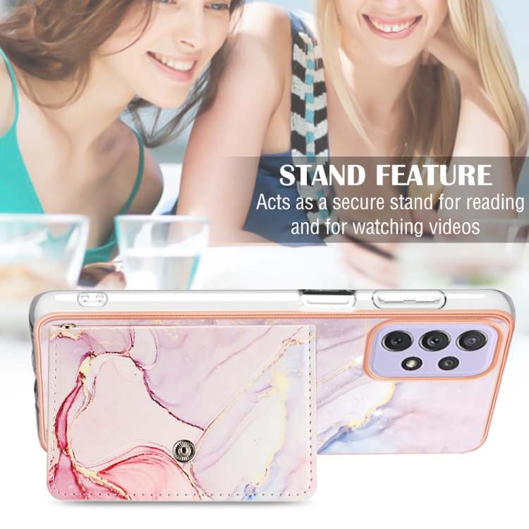 Estuche para Teléfono Samsung Galaxy A72 5G / 4G con Ranura para Tarjeta Imd y Patrón de Mármol (Oro Rosa)