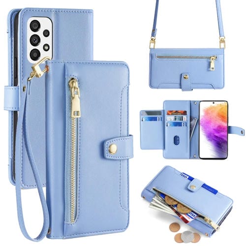 Funda para Samsung Galaxy A73 5G Cuero con Billetera Cremallera Cuerpo Cruzado Textura Oveja (Azul)