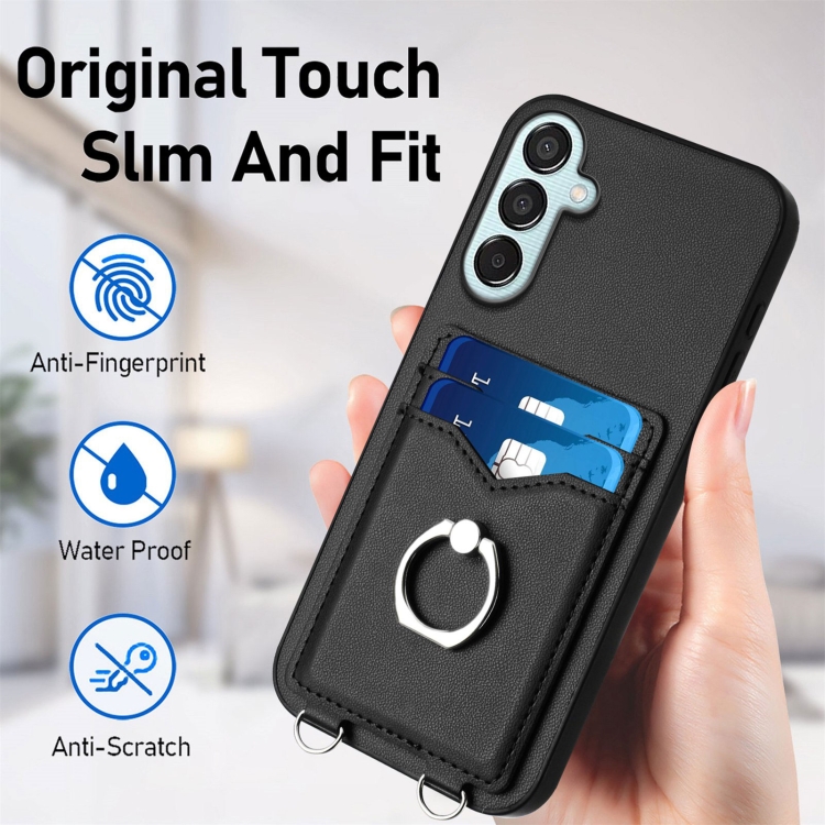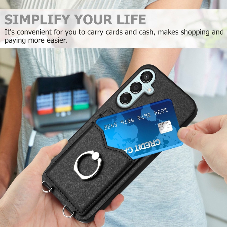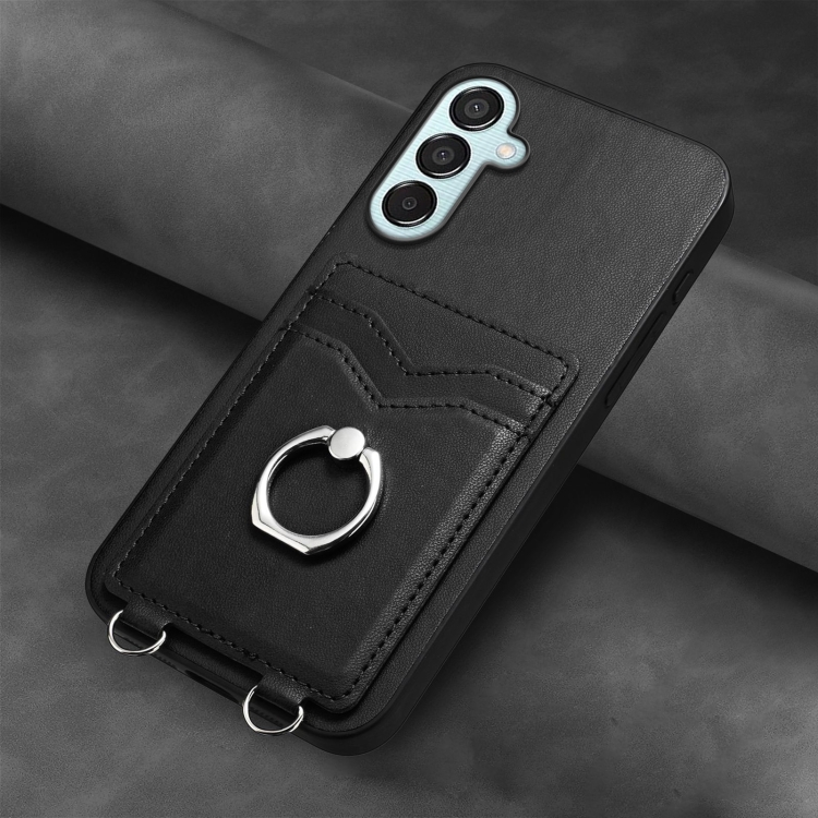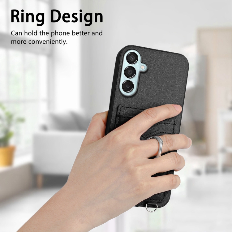 Estuche para Teléfono Samsung Galaxy F15 M15 R20 con Soporte para Tarjeta con Anillo (Negro)