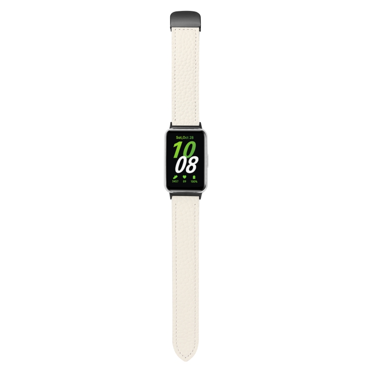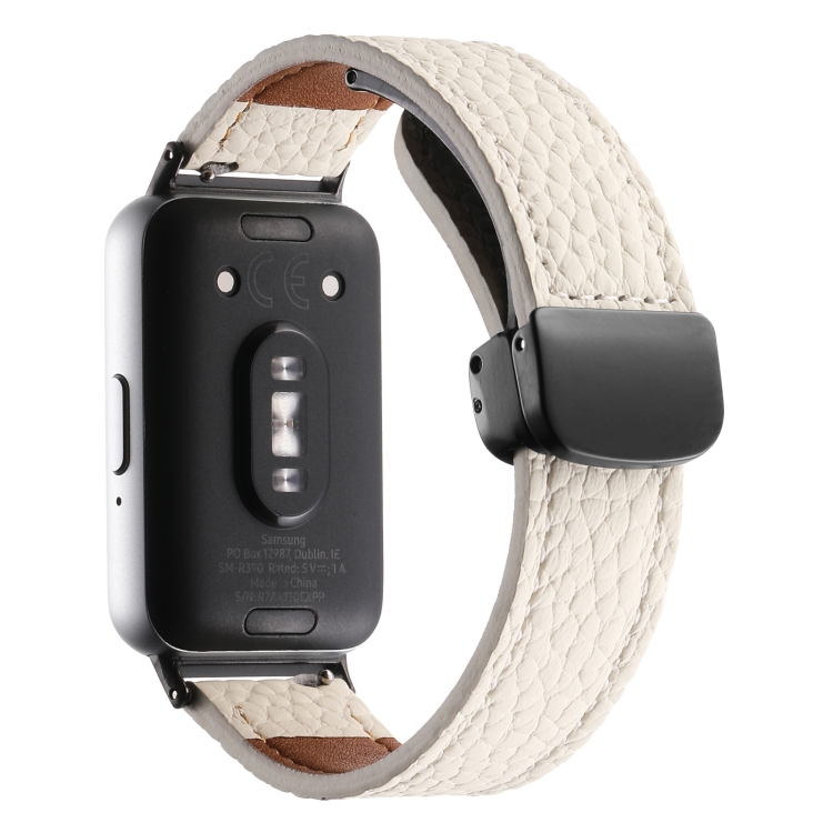 Correa de Reloj de Cuero para Samsung Galaxy Fit 3 con Hebilla Magnética Negra y Textura Litchi (Blanco)
