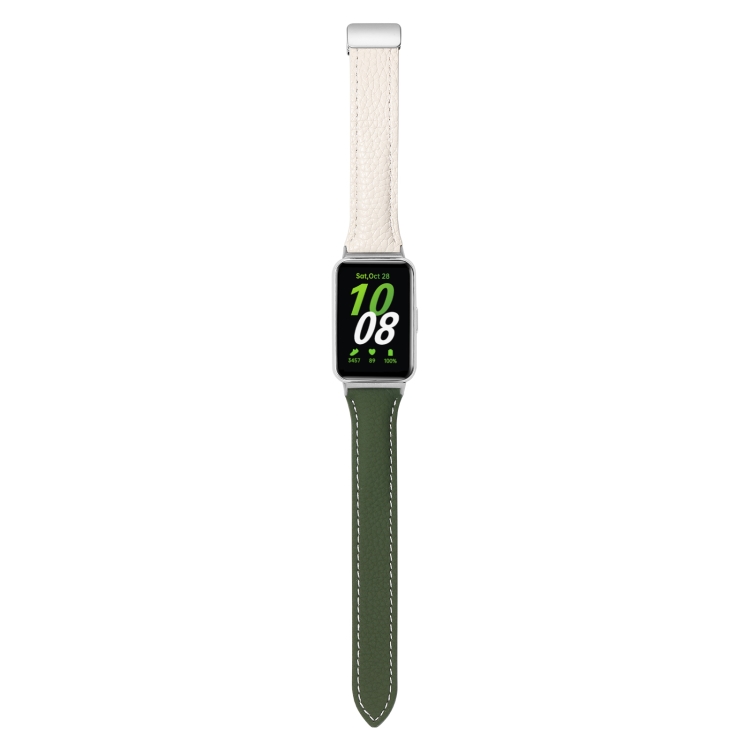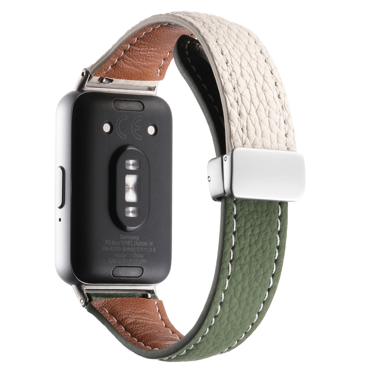 Correa de Reloj Cuero para Samsung Galaxy Fit 3 con Hebilla Magnética y Textura Litchi (Blanco Leche + Verde Oscuro)