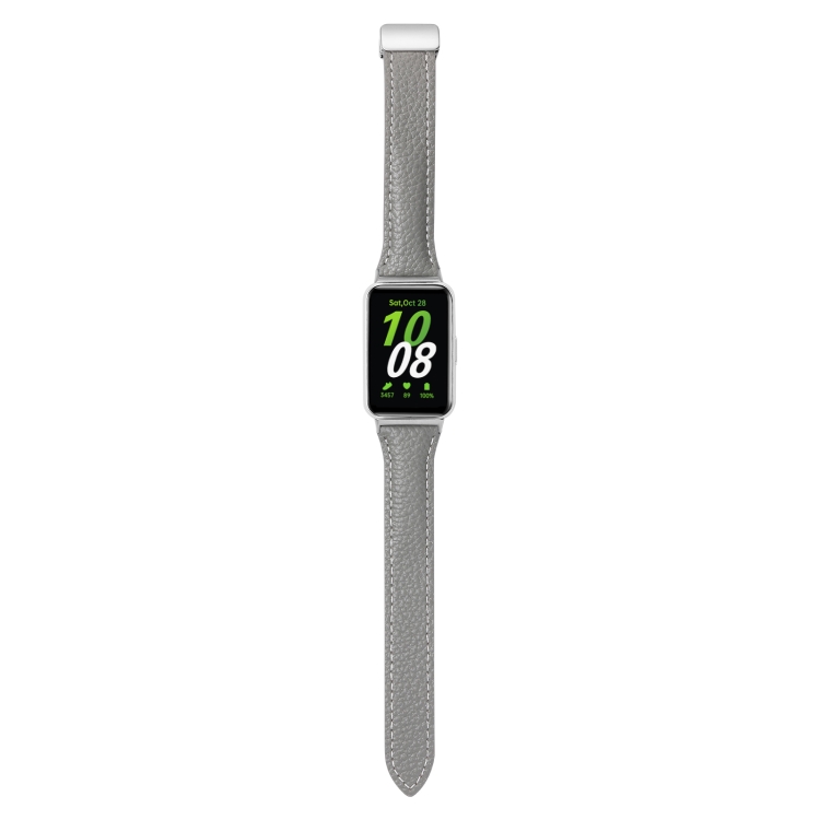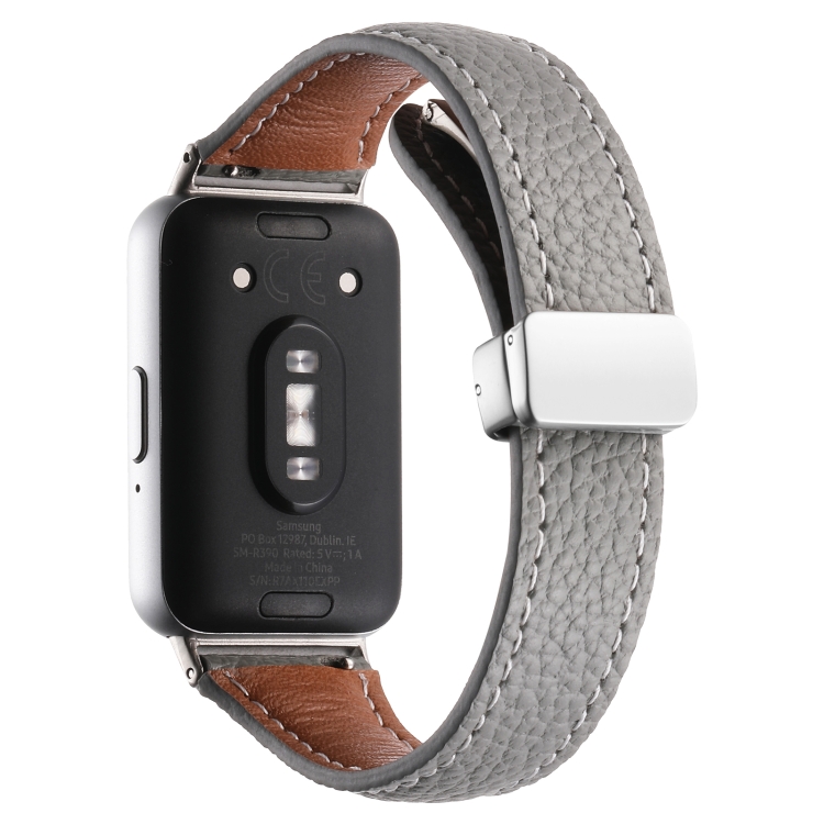 Correa de Reloj para Samsung Galaxy Fit 3 Cuero Delgada con Hebilla Magnética y Textura Litchi (Gris)