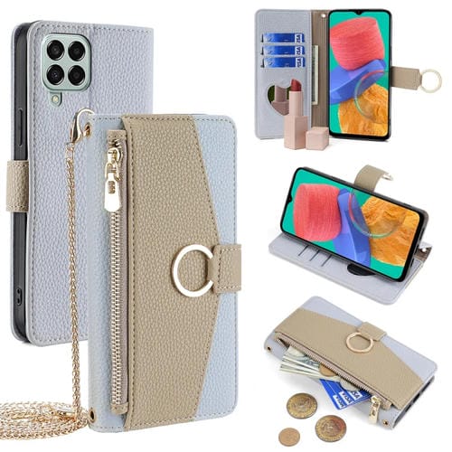 Funda para Teléfono Samsung Galaxy M33 5G Cuero Textura Litchi Crossbody (Azul)