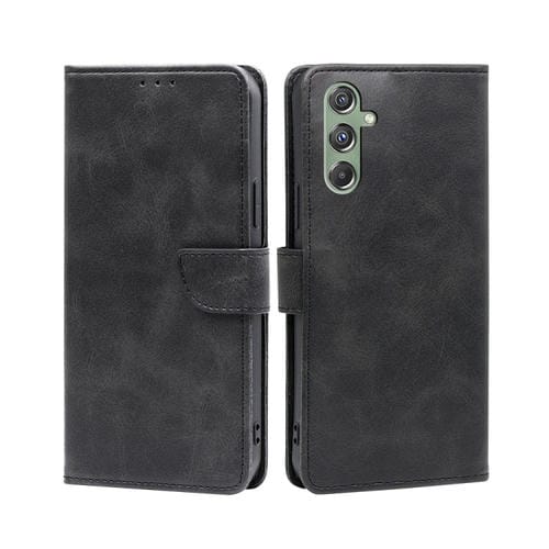 Funda para Teléfono Samsung Galaxy M34 5G F34 5G Cuero con Tapa Hebilla Textura Becerro (Negro)