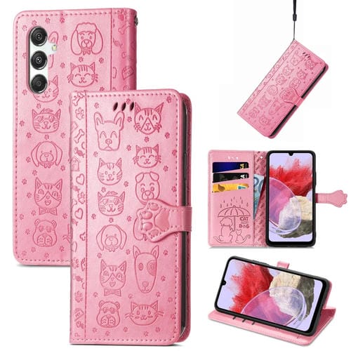 Funda para Teléfono Samsung Galaxy M34 5G Cuero Relieve Perro y Gato (Rosa)