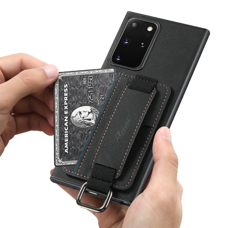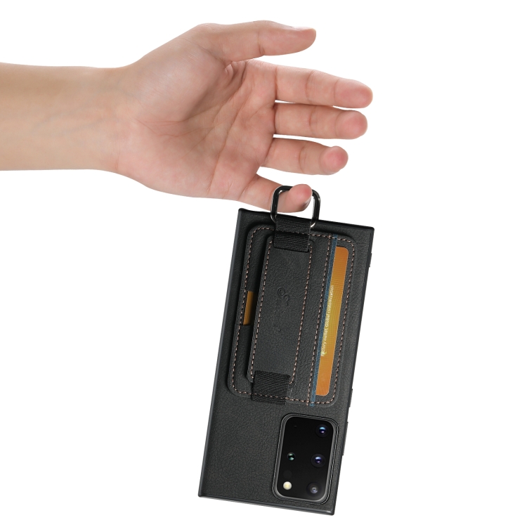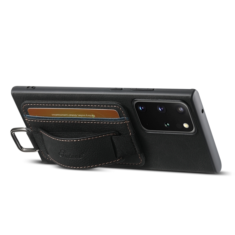 Funda de teléfono Suteni H13 para Samsung Galaxy Note20 5G con correa de muñeca de cuero Litchi (Negro)