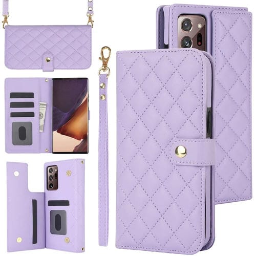 Estuche para Teléfono Samsung Galaxy Note20 Ultra Crossbody de Cuero Rómbico Multifunción (Púrpura)