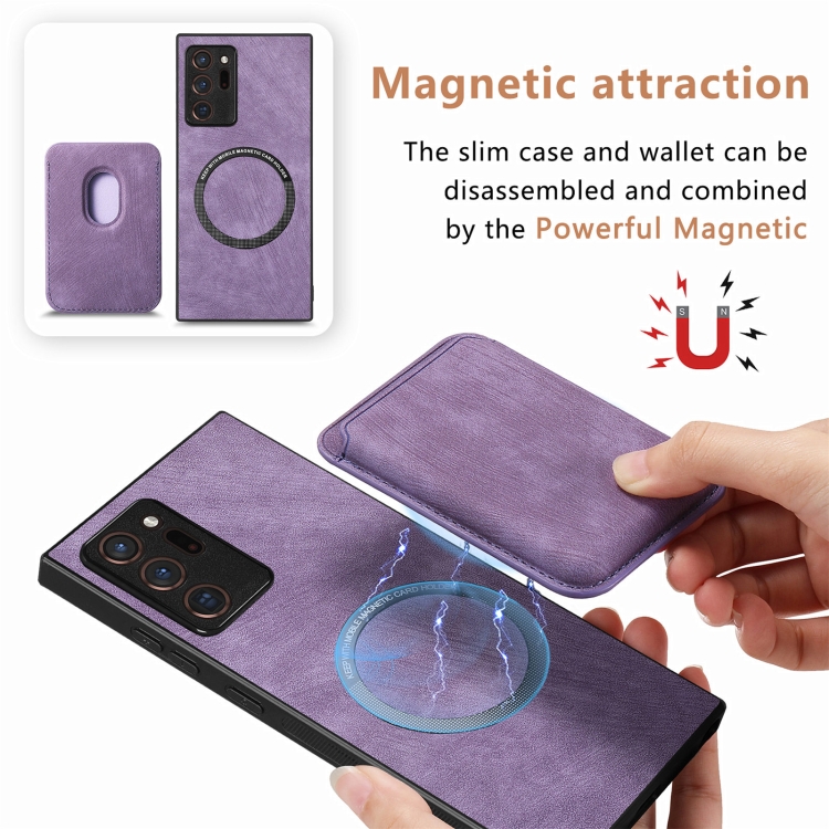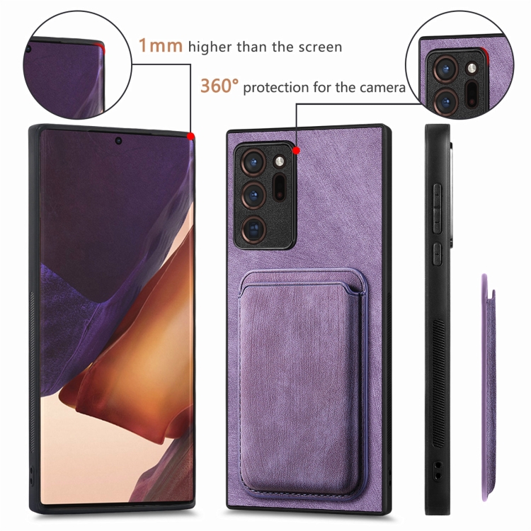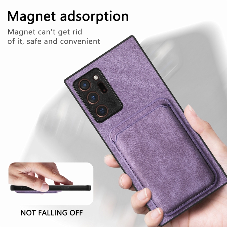 Funda de Cuero Samsung Galaxy Note20 Ultra Retro con Bolsa para Tarjetas Magnética (Púrpura)